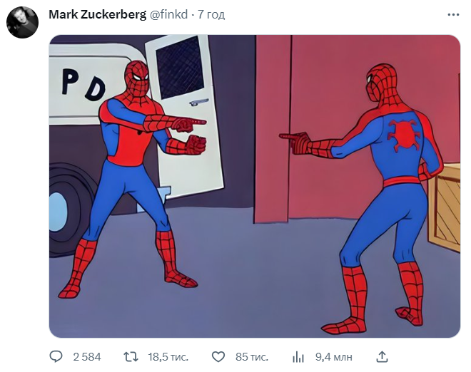 "Он также опубликовал в Твиттере известный мем о противостоянии Человека-паука и Человека-паука — в шутливом выражении соперничества с Маском и между двумя службами", — говорится в сообщении.