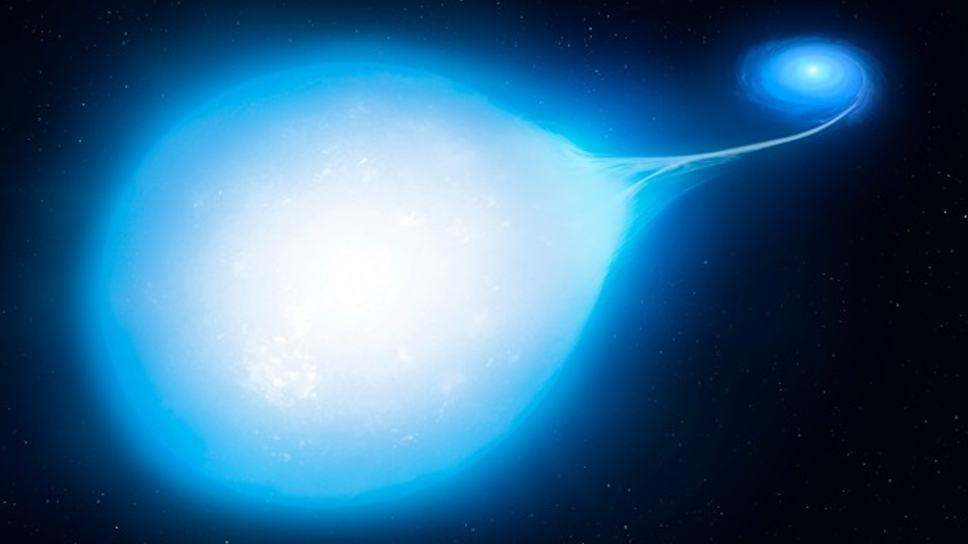 Международная группа астрономов обнаружила звезду редкой каплевидной формы, которая, по их мнению, является частью двойной звездной системы, что приближается к слиянию с образованием сверхновой. Эксперты считают, что вторую часть космического тела, которую представлено белым карликом, не видно.
