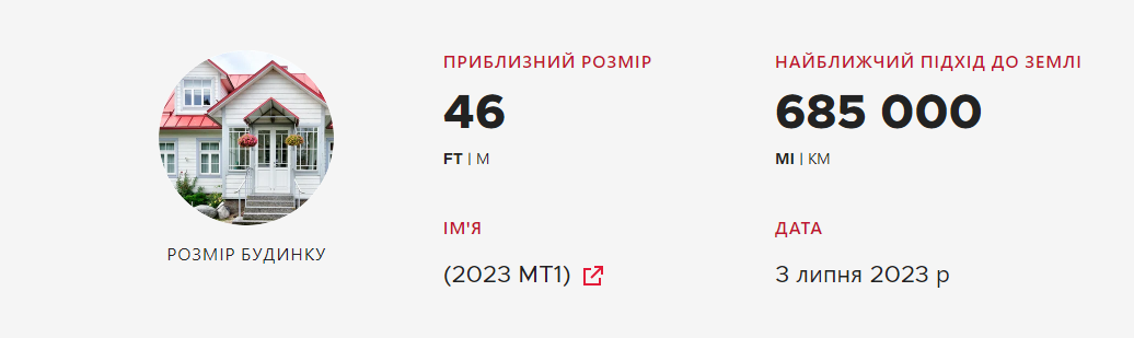 Повз Землю на відстані 685 тисяч кілометрів 3 липня мав пролетіти астероїд під назвою 2023 MT1. Його розмір невеликий, порівняно з іншими небесними тілами. В діаметрі він як приватний будинок.