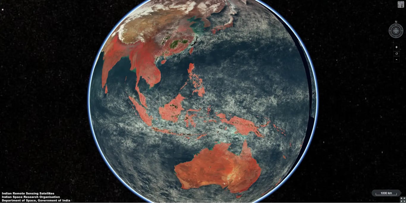 Минулоріч Індійська організація космічних досліджень (ISRO) запустила свій супутник спостереження Землі-06 (EOS-06) у космос. Після обробки 300 ГБ даних, що супутник передав на Землю, вчені створили мозаїчне зображення в хибних кольорах. Воно об’єднує 2939 фотографій, зроблених у період з 1 по 15 лютого 2023 року.