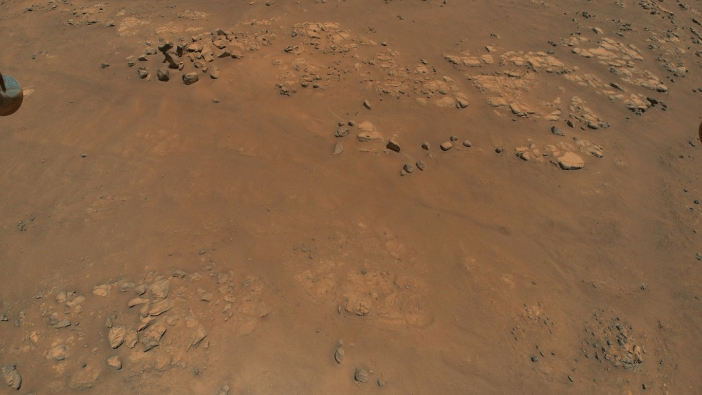 NASA оприлюднили світлини, які зробив мінігелікоптер Ingenuity (Винахідливість) під час дев’ятого польоту. Кольорові світлини зробили ще 5 липня з висоти близько 10 метрів.