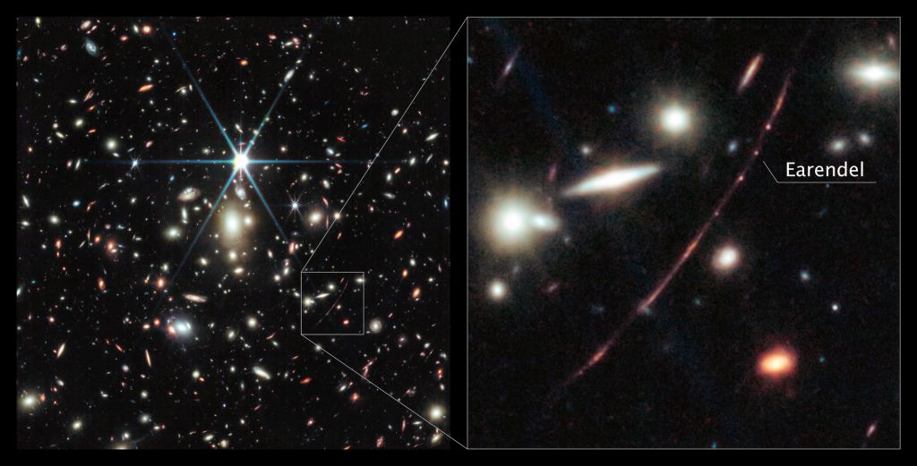 Нещодавно телескоп Джеймса Вебба (JWST) оприлюднив детальні кадри віддаленої важкої зірки типу В, яку називають Еарендел (ранкова зоря). За словами вчених, її температура вдвічі перевищує температуру Сонця, тому зірка також в мільйон разів яскравіша.